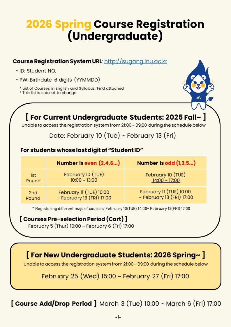 Please CLICK the link to download the “2026 Spring Syllabus.”