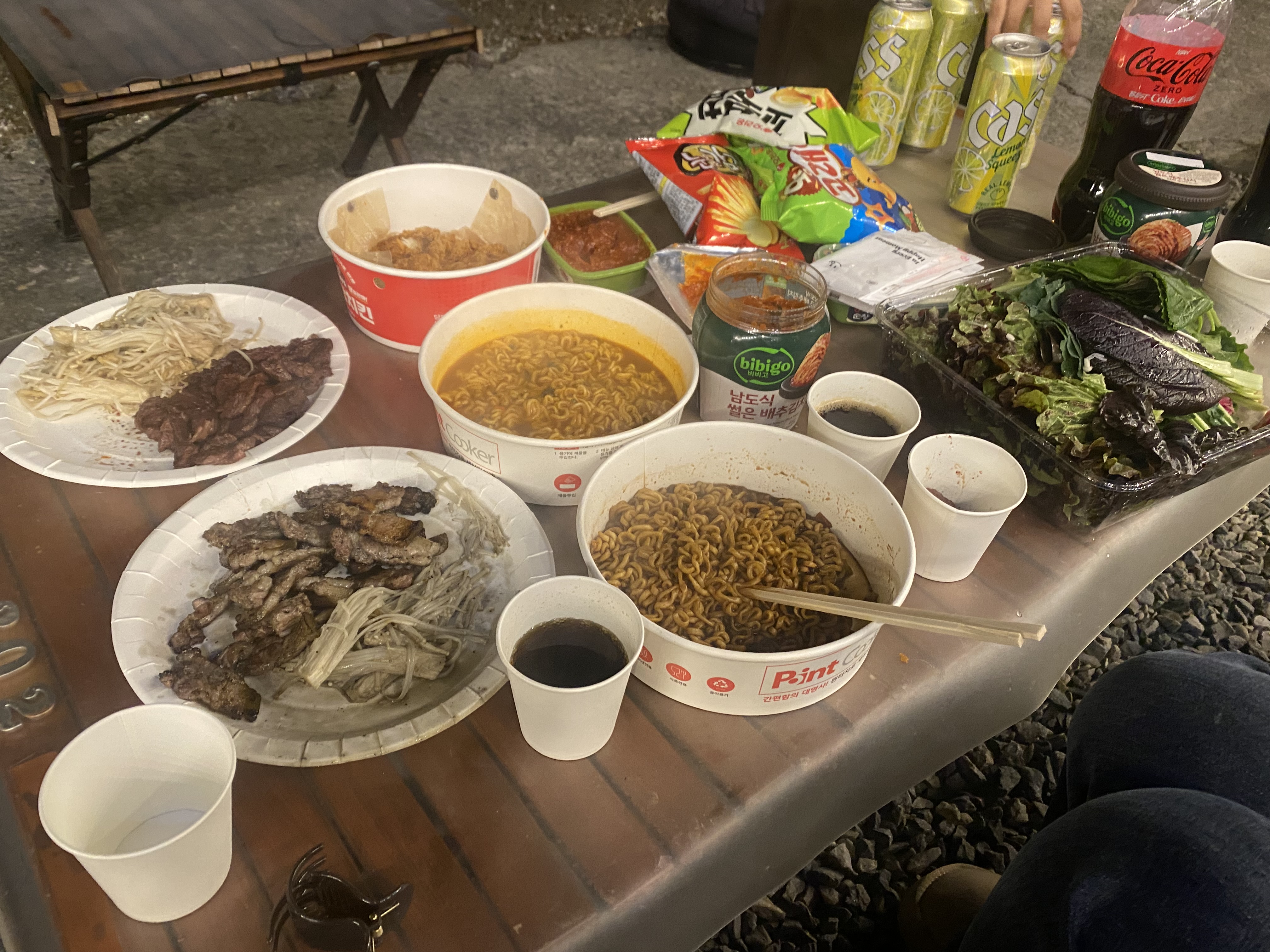 날씨 조금 춥지만 글램핑 방도 예약하고 바베큐도 했습니다 ㅋㅋ 너무나 맛있게 먹엇어요!