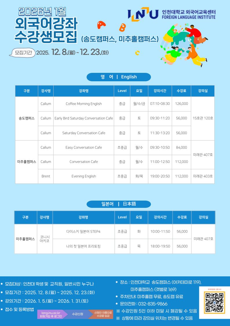 2026년 1월 외국어강좌의 강의계획서를 첨부파일로 안내드립니다.